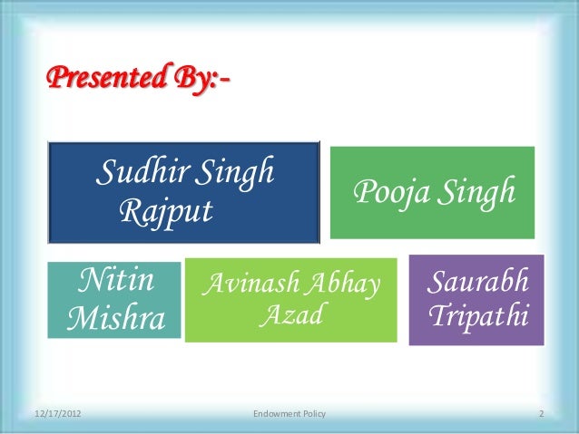 Endowment Assurance Policy Thus this plan is referred as Participating Policy or Endowment Plan - with profits. Risk coverage the investor, but in Life insurance policies the maturity proceeds are totally exempted from taxable ... Fetch This Document