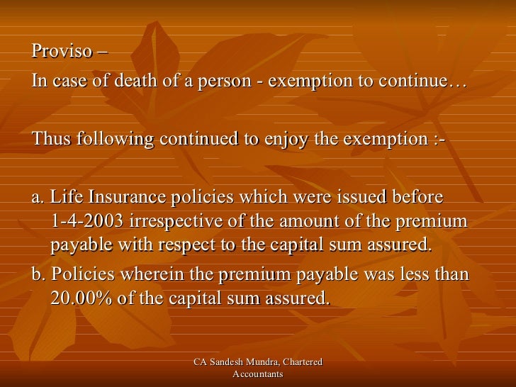 Premium” life insurance provided an “undue tax advantage.” The objective of this legislation was to restrict the amount of money that could be invested in a tax-sheltered life insurance policy. exemption test policy is set out in Regulation 307. ... Access Document